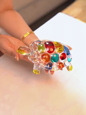 Handcrafted Crystal Glass Turtle Statue – Colorful Mosaic Shell, Unique Gift Idea